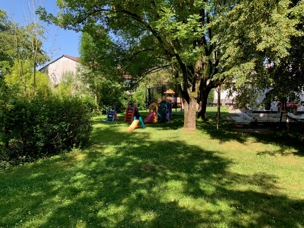 La crèche a le bonheur d’avoir un espace de verdure aménagé pour aider les enfants à développer leur psychomotricité globale par diverses activités. Ceux-ci peuvent s’y amuser en toute sécurité en évitant les véhicules grâce à la barrière qui se trouve à l’entrée de la crèche.
